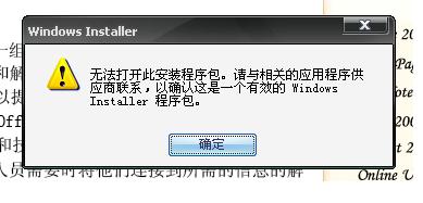 新装系统,xp+sp2,一共三台电脑装的这个系统,今天有一台从装系统后,原有office2003光盘无法使用,但是该光盘在其它两台电脑上可以正常使用。无法使用的电脑提示“无法打开此安装程序包————”不知道是什么问题。