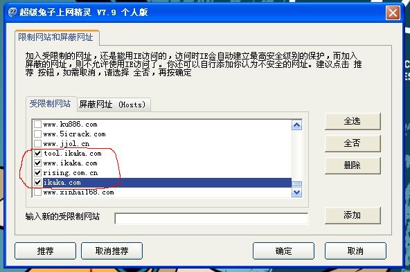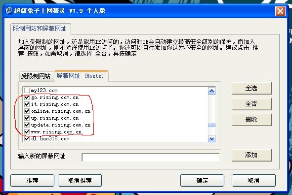 我是瑞星正版用户,近来发现瑞星不能升级,瑞星主站和社区也不能登录,后来我发现是超级兔子的上网精灵搞的鬼,每次开机,它自动就把所有关于瑞星的一切网站和链接当做恶意网站给屏蔽掉。导致我现在也无法升级瑞星杀毒软件!请问这是怎么回事?如何解决?