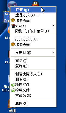 在桌面图标上右键,会出现两个瑞星杀毒和文件粉碎。大家看看是不是这样的——