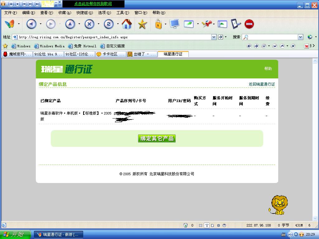 瑞星2005单机版(标准版)的杀毒软件,一般可以用5年吧。