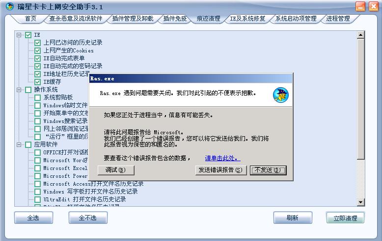 不知道怎么回事,使用卡卡清理的时候总是出现以下这个错误~~~~