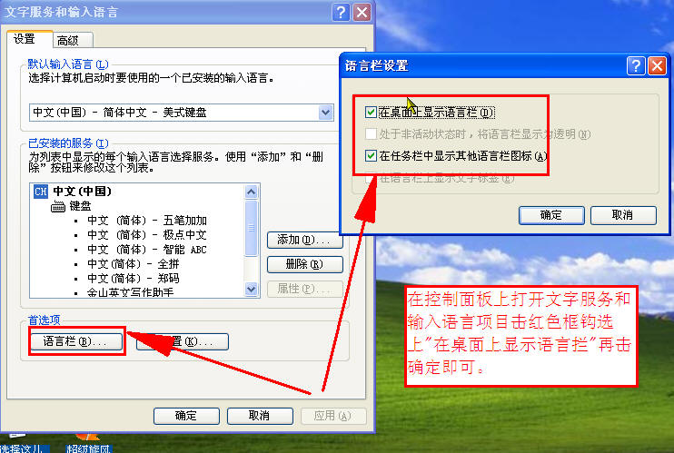 在控制面板中打开“区域和语言选项”→击语言卡→详细信息→参见下图红框所示→