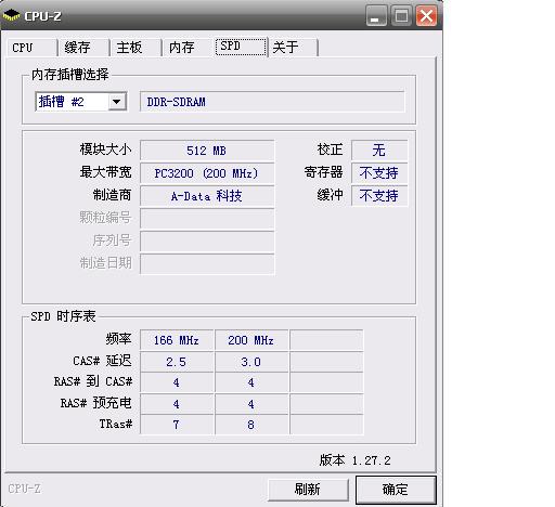 【求助】为什么DDR400的内存用CPU-Z测得只有333的频率?