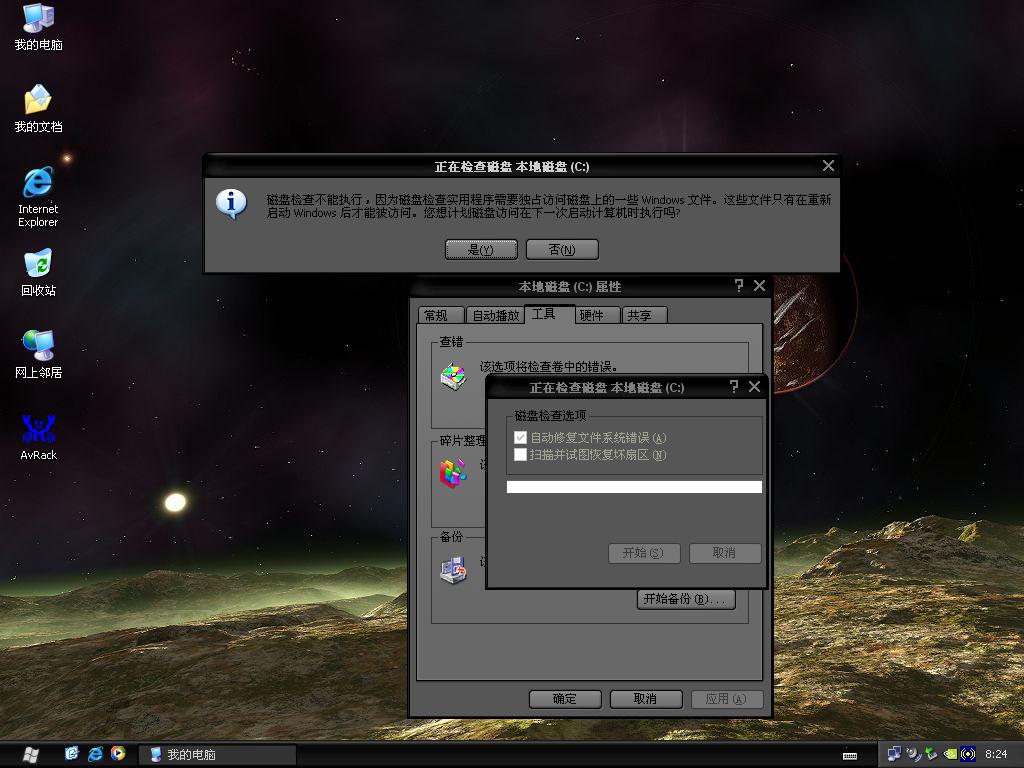 关于安了杀毒软件以后你们再用WINXP的磁盘扫描重起以后你们试试看是什么样子!