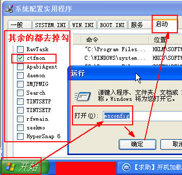 运行--msconfig--除了ctfmon,