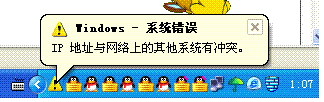 【菁菁需要你帮忙的贴子】屏幕右下脚总是出现“IP地址与系统冲突”是怎么回事