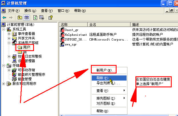 指到“我的电脑”击右键选择“管理”→在左面打开“本地用户和组”→参见下图所示完成这步操作再在“开始”→“运行”→输入“control.exe userpasswords2”进入“用户帐户”→用鼠标指到该用户双击在弹出窗口中击“组成员”卡在这里可以给他指定权限,最后再在“要使用本机,用户必须输入用户名和密码”打上钩。即可完成操作了。