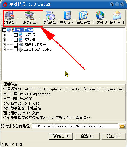 我从不用什么超级兔子或windows优化大师,所以也就没有用过它来备份驱动了,但是我是用驱动精灵来备份各种硬件驱动的,很好用的,它还可以生成可执行文件直接执行即可安装了,你可以到网上搜索它去下载一个试试吧,参见下图,要查找系统的驱动程序,可打开系统的隐藏属性搜索所有的“inf”文件,在找到所安装硬件的“inf”文件里面能够找到它所安装的路径,但这样找起来较复杂又麻烦还有可能不完全,所以建议用驱动精灵是最好的法子了,它是又快又方便的。