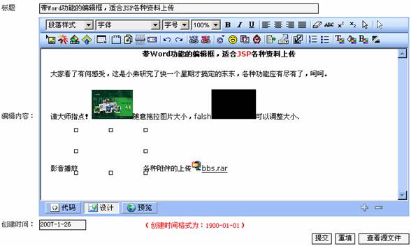 带Word功能的编辑框,适合JSP各种资料上传【原创】