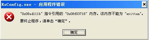 “0x08ed111b”指令引用的“0x08f03718”内存。该内存不能为“written”。要终止程序,请单击“确定”。