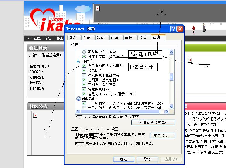 我的ie无法显示图片,而设置中显示图片已打开,长时间了,治不了啊!