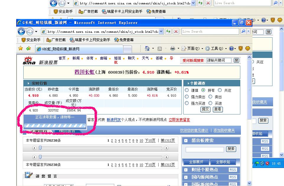 用IE7打开网页时,有些网页老是"正在读取数据"不能全打开.真烦人!怎么去掉"正在读取数据"?谢谢!
