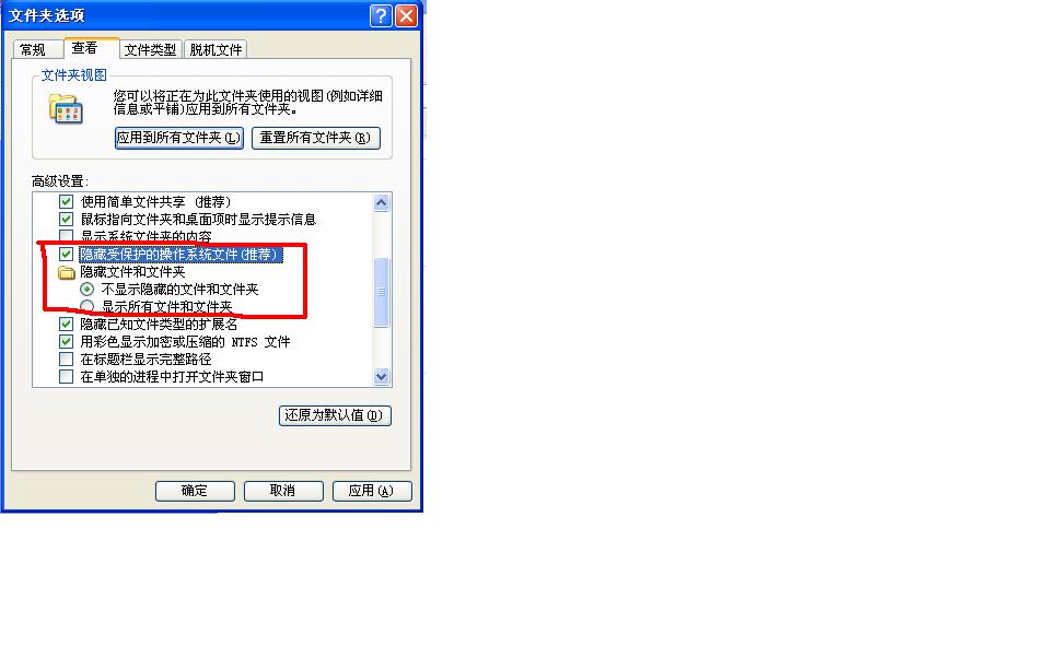 【vv123vv的贴子】电脑:隐藏文件和文件夹下的“不显示隐藏的文件和文件夹和显示所有文件和文件夹”都被选上怎么解决?