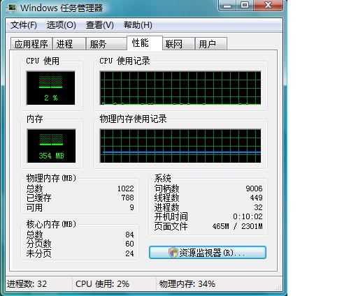 连续打开10个IE7.0浏览器,CPU占用在50%以下、内存占用在70%以下!