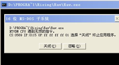 瑞星出现问题.启动不了.提示:NTVDM CPU遇到无效指令.要终止程序!