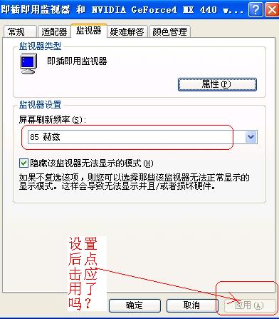 【来电是有缘的贴子】电脑频幕闪的厉害.监视器、已调到85了。可频幕还是闪的厉害。是什么原因造成的?