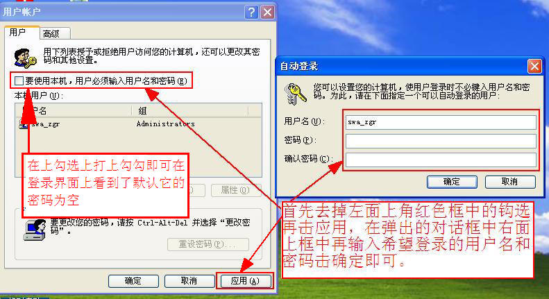 在“开始”→“运行”→输入“control.exe userpasswords2”进入“用户帐户”参见下图红框中所示:
