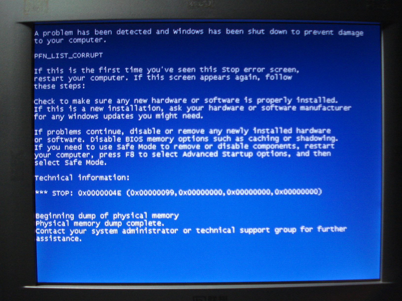 在网上搜了一下,你的"PFN_LIST_CORRUPT"错误可能是游戏引起的。