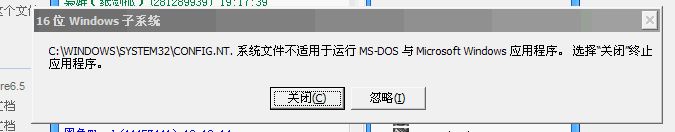 今天装一个软件,装不上去,就弹这个框出来,以前都能装上,重装系统后就装不上,然后我又重下,还是弹这个框出来:c:\windows\system32\Config.nt系统文件不适用于运行MS-DOS与microsoft windows应用程序