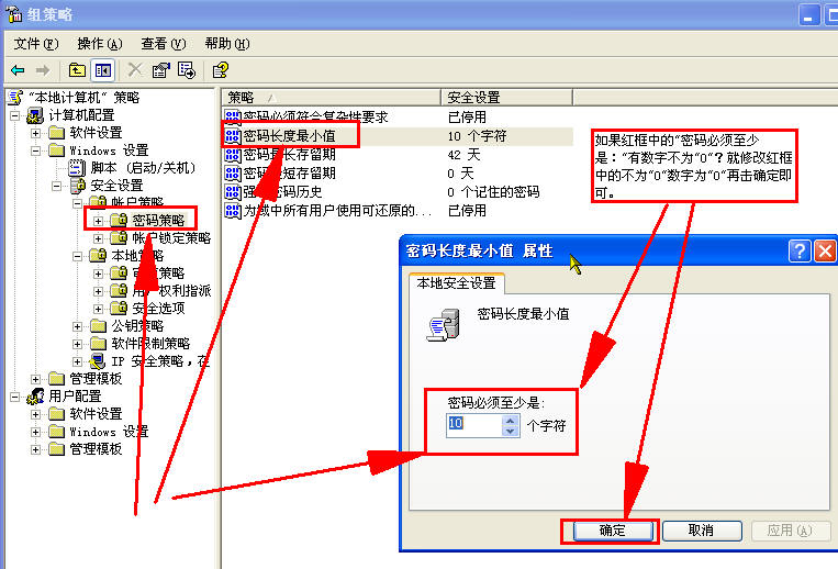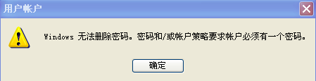 我的系统是XP2,我设了个开机密码,之后又想删掉,在“拥护帐户”删除就弹出“WINDOWS无法删除密码。密码和/或帐户策略要求帐户必须有一个密码。”在“本地用户和组”(填了空密码)就弹出“为用户XXX设置密码时,出现以下错误:密码不满足密码策略的要求。检查最小密码长度、密码复杂性和密码历史的要求。”求教