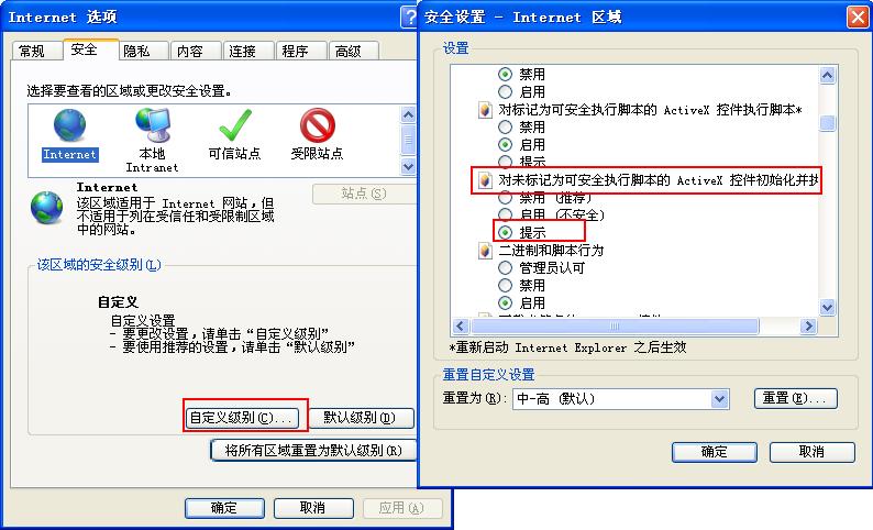 打开一些网站,有时会出现"你的安全设置不允许网站使用安装在您的计算机上的Activex控件.此页可能没有正确显示."我用了修改Internet属性里的安全这一项,可是还是没有用,请问有人能帮我下吗???