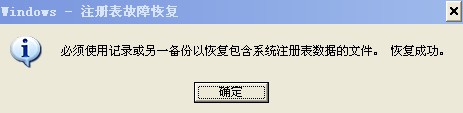 每次开机后,系统在进入xp界面时都提示“必须使用记录或另一备份以恢复包含系统注册表数据的文件。恢复成功。”