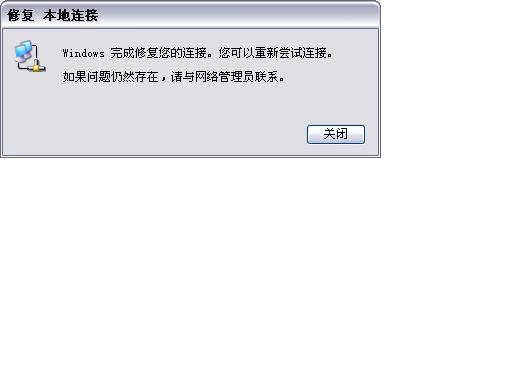 又是网络掉线,使用右键“修复”功能后,出现如下对话框,网络通了,但是这个对话框却不能取消,一直存在,为什么?怎么办?