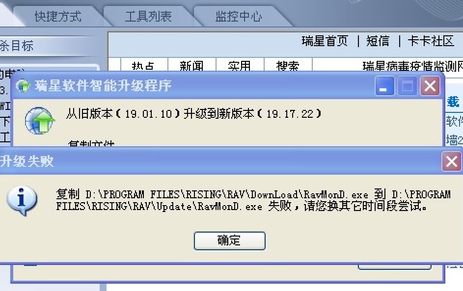 【求助】郁闷 急 急 我的瑞星2007卸载重装后无法升级