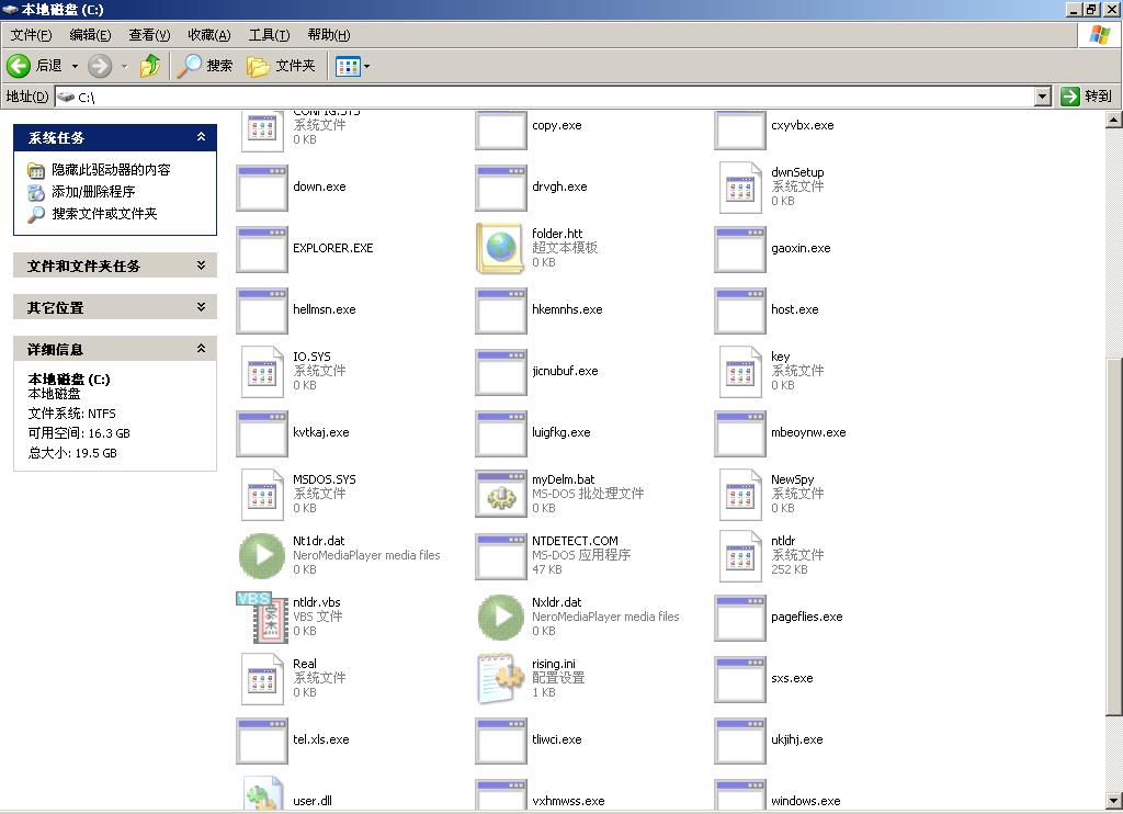 你C盘下的那些就是病毒啊。。。除非是你自己随便改后缀名,和改文件名字,然后添加隐藏属性,系统属性,目的搞得像病毒一样。。