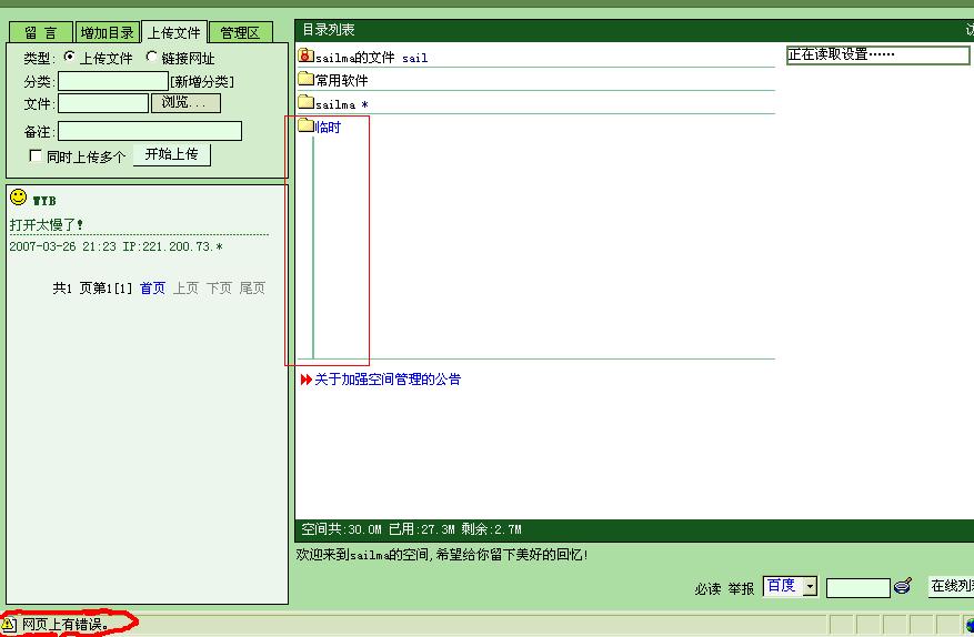 每次进入这种类型的网盘时都无法找到下载,点开文件夹后只有一条竖线,看不到里面的文件,左下角还会显示“网页上有错误”。一开始我以为是网络问题,可每次都是这种情况,已经N多次了。是我在操作时的没弄对还是我系统的问题呢?