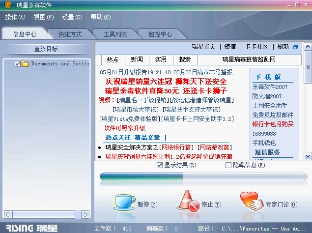今天按照惯例升级完瑞星扫描C盘.可是没想到速度是"极其"的慢~~~