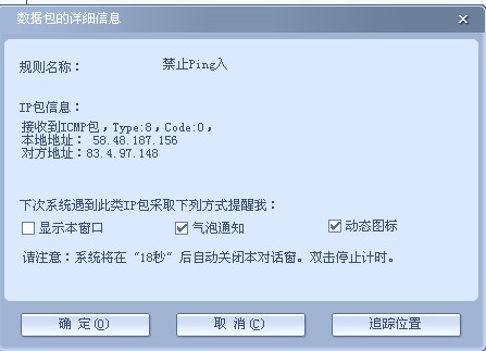 瑞星防火墙已设置相应的规则,这样可以有效防止非法入侵。所以会出现禁止ping入的提示,不必担心。