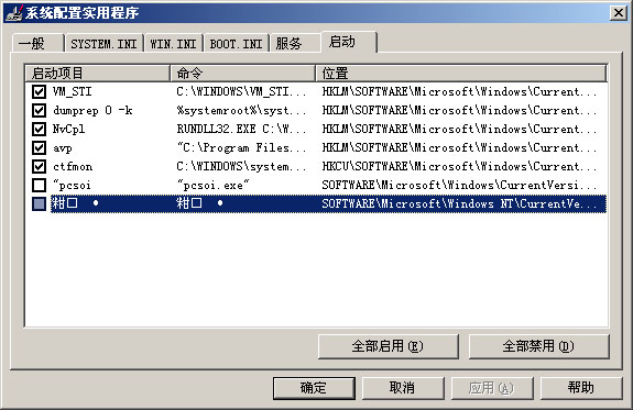 【aibb的贴子】启动项里看图没打勾的两项,怎么从启动项里删除?从上数第二项是什么?谢谢!