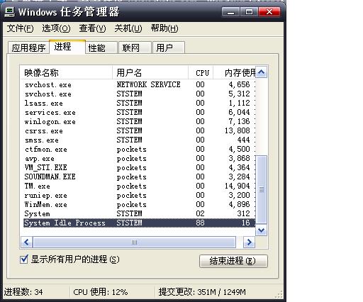 搞不懂,想问问哪位大侠,system idle process项是什么?CPU占用高,能停吗?打开网页时很慢,用卡巴杀毒时很卡,一般的文件夹打开也很慢!主频2.5的,内存也有512,也不会很慢吧!哪位高人帮我指点!