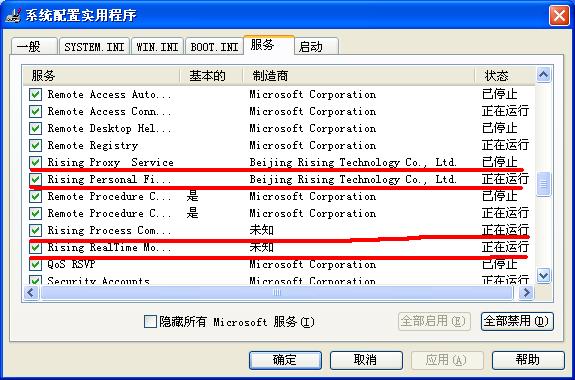 【xiaoxiaoshier的贴子】我开机运行的程序太多,就在运行里面打入msconfig ,现在开机运行的程序是少了,但是桌面右下角看不到瑞星防火墙的“小伞”,这时瑞星防火墙还是打开的么?各位大虾,我该怎么办?