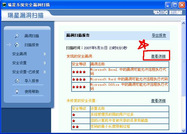 安装瑞星杀毒软件后,也安装了瑞星个人防火墙....在防火墙中查到:发现安全的漏洞数:(危急)6个.未修复的安全设备数:7个.(一般4个)(中等3个).发现上面这些。但不知道怎么操没漏洞和修复好设备.我一直纳闷着。难道这个防火墙只能查到,而不能修复好的吗?恳请您帮我解疑.谢谢!