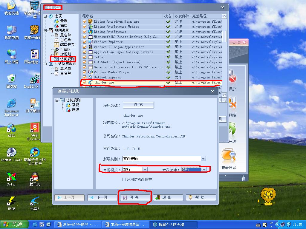 本人自从在自己的电脑上安装了瑞星后,发现迅雷就不能用了,我不知道这是怎么回事,,于是就重装迅雷后,防火墙会提示允许/禁止网络,这时选择允许后,发现必须是要在关闭瑞星防火墙后才能使用迅雷,请问还有其他的办法可以解决一下吗?谢谢
