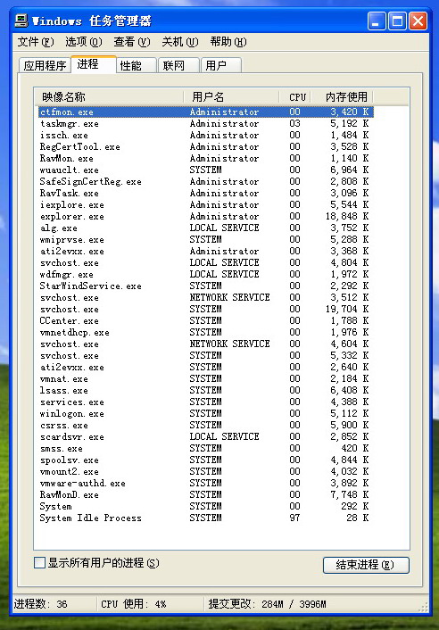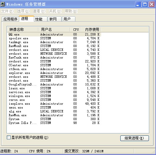 各位同仁们 大家内存平时都用到多少啊? 我1G内存不开大型软件平时314M~!!