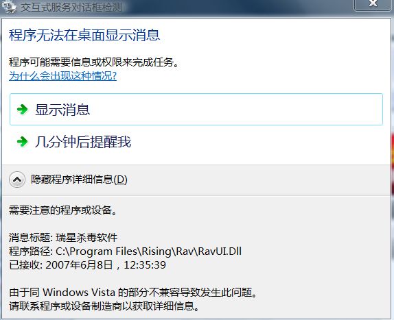 我的系统是vista旗舰版,刚刚跟新到最新毒病毒库后,重启出现如下问题: