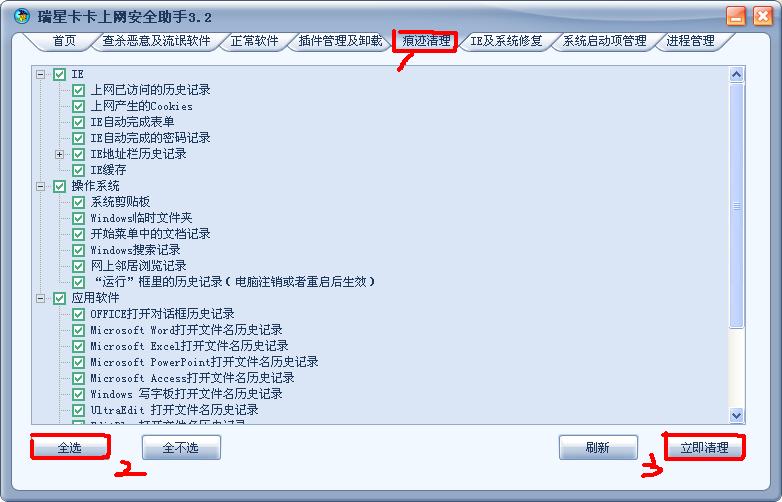 最好在关闭IE所有窗口后再用卡卡助手的“痕迹清理”!