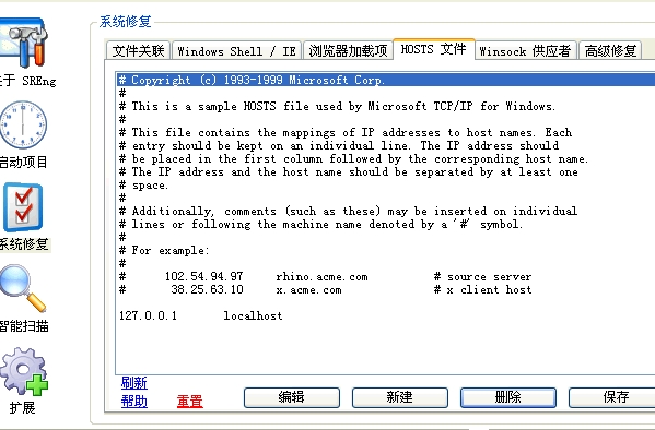 “127.0.0.1 LOCALHOST”以上的部分是SRENG扫描工具的注释,并非你HOSTS文件里的DD!