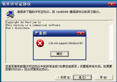 以前我从来没有遇到过在XP系统下无法安装FPE软件的事情,不过这次重装系统以后,发现装FPE2000,竟然系统会提示我"I do not support Windows NT."请问这是怎么回事呢,应该如何解决这个问题呢?