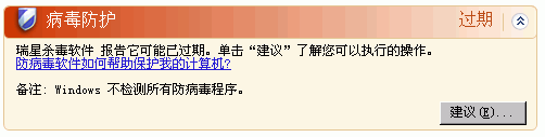 我的瑞星杀毒软件已是最新版了,WINDOWS安全警报却说是已过期,