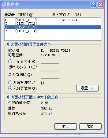 ps:并不是说你的游戏在E盘你就要在E盘上设虚拟内存。一般虚拟内存都设在C盘上,因为C盘的读取速度最快。