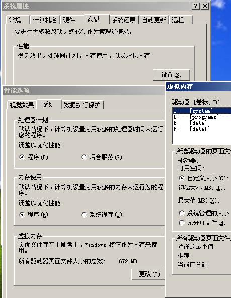 我的电脑->属性->高级->性能->设置->高级->虚拟内存->更改