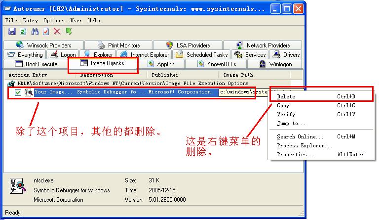 删除下图所示的其他项,估计你那系统里的explorer被映像劫持了。
