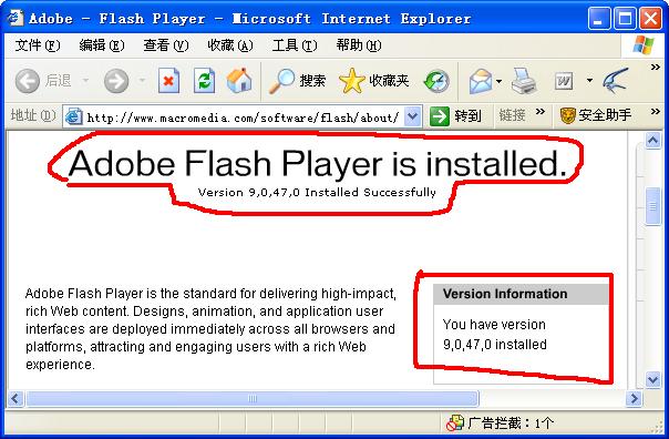 如果还不是9.0.47.0版本,请下载新版本Flash播放器: