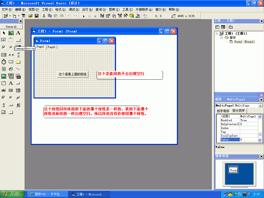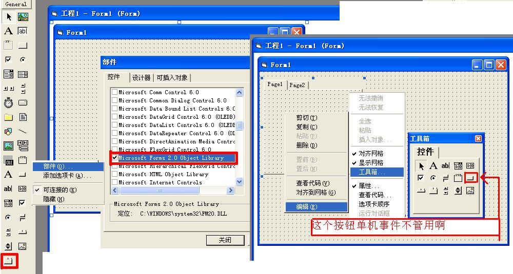 【求助】 如何在 VB中的 MultiPage 中添加按钮事件 ?