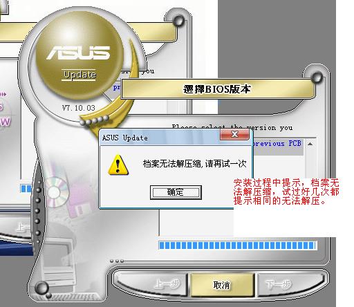 用华硕Update自动升级BIOS程序7.0出现无法解压,有图。请高手指点