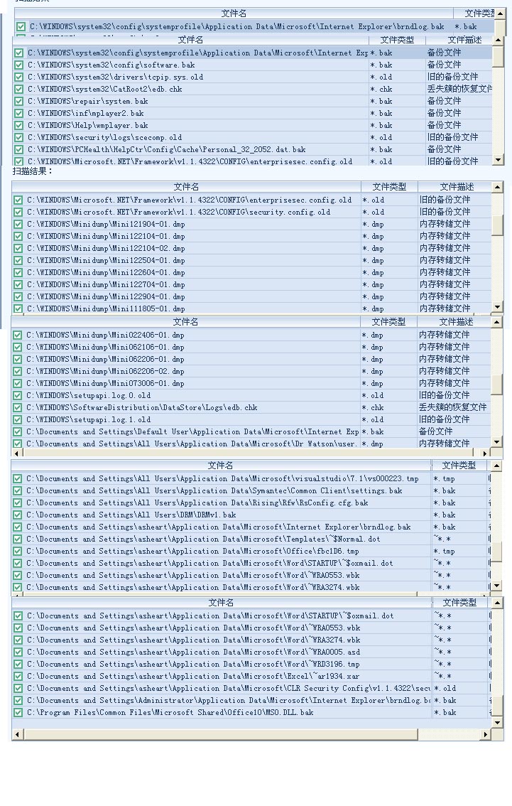 这是卡卡中“系统垃圾智能清理”所扫描出的文件(附件中),请问是否能可以除掉,没把握,请哪位高人指点一下